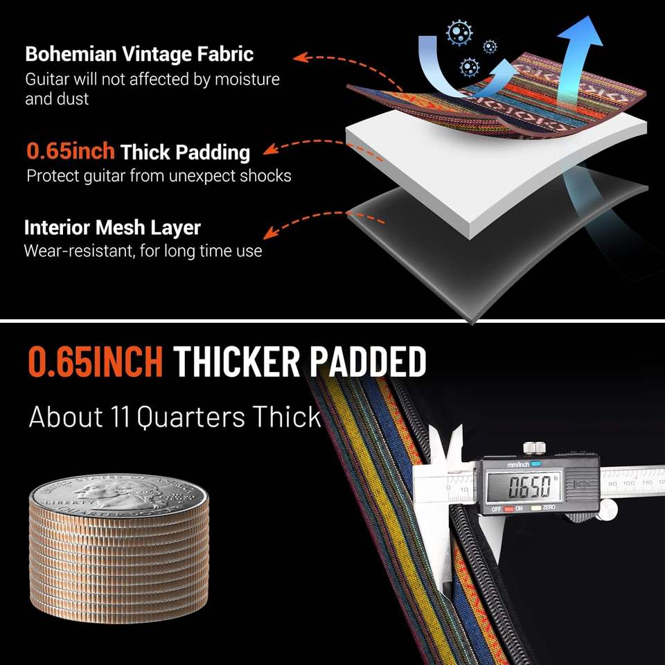 กระเป๋าใส่กีตาร์อะคูสติกแผ่นรองหนากันน้ำปรับได้สายคล้องไหล่คู่กระเป๋ากีต้าร์