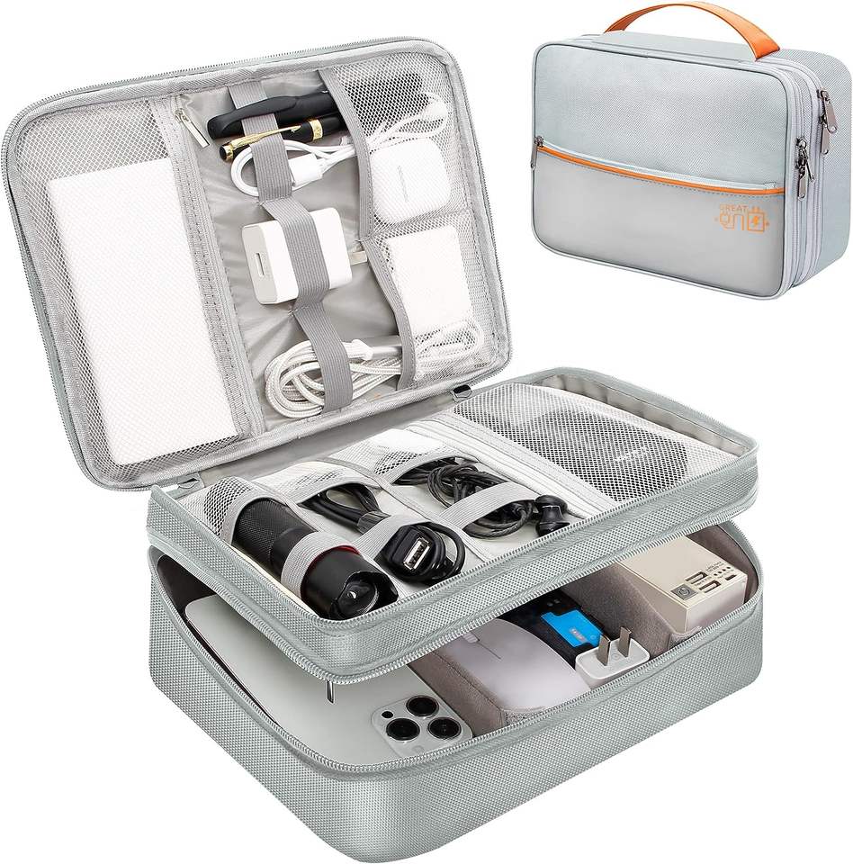 กระเป๋าใส่อุปกรณ์อิเล็กทรอนิกส์แบบพกพา กันน้ำ ผ้าแคนวาส ซิปสองชั้น สำหรับเดินทาง ตัวอย่างสินค้าฟรี