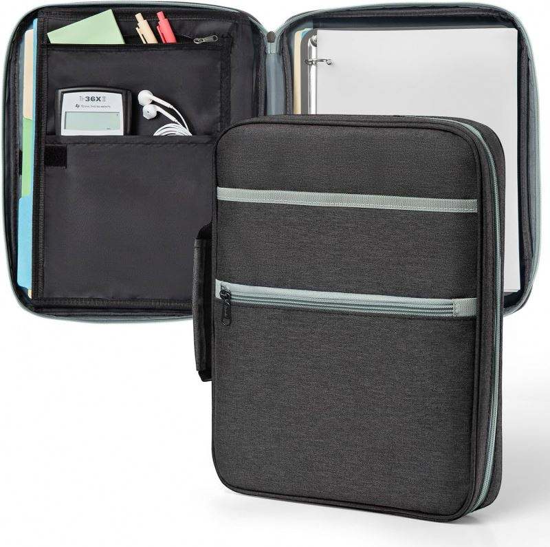 แฟ้มซิป BSCI ตัวอย่างฟรี พร้อมช่องใส่ของ, ห่วงกลมขนาด 3 นิ้ว, หูหิ้ว และสายสะพายไหล่แบบถอดได้, แฟ้มแบบขยายได้ 5 ช่อง
