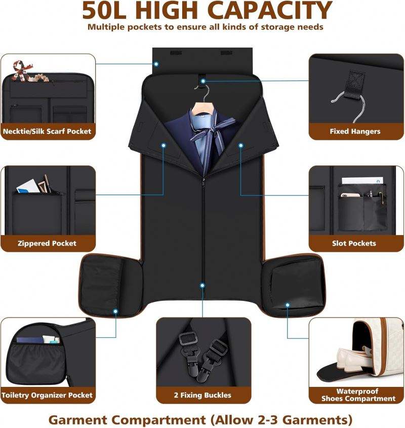 กระเป๋าใส่เสื้อผ้าแบบพกพาสำหรับเดินทาง กระเป๋าเดินทางแบบแปลงสภาพได้ กระเป๋าใส่สูทสำหรับผู้ชายและผู้หญิง