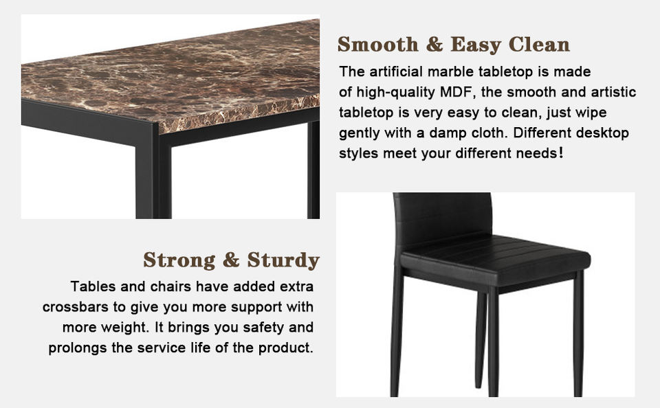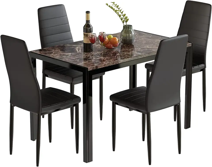 ชุดโต๊ะและเก้าอี้หนัง5ชิ้นลายหินอ่อนคลาสสิกสำหรับคาเฟ่ห้องครัวชุดโต๊ะอาหารสุดหรูเก้าอี้4ตัว