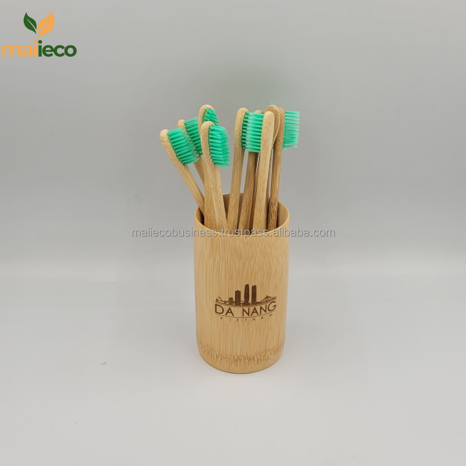 คำอธิบาย:แปรงสีฟันไม้ไผ่ธรรมชาติและย่อยสลายได้ใช้ในบ้านของโรงแรมออร์แกนิก
