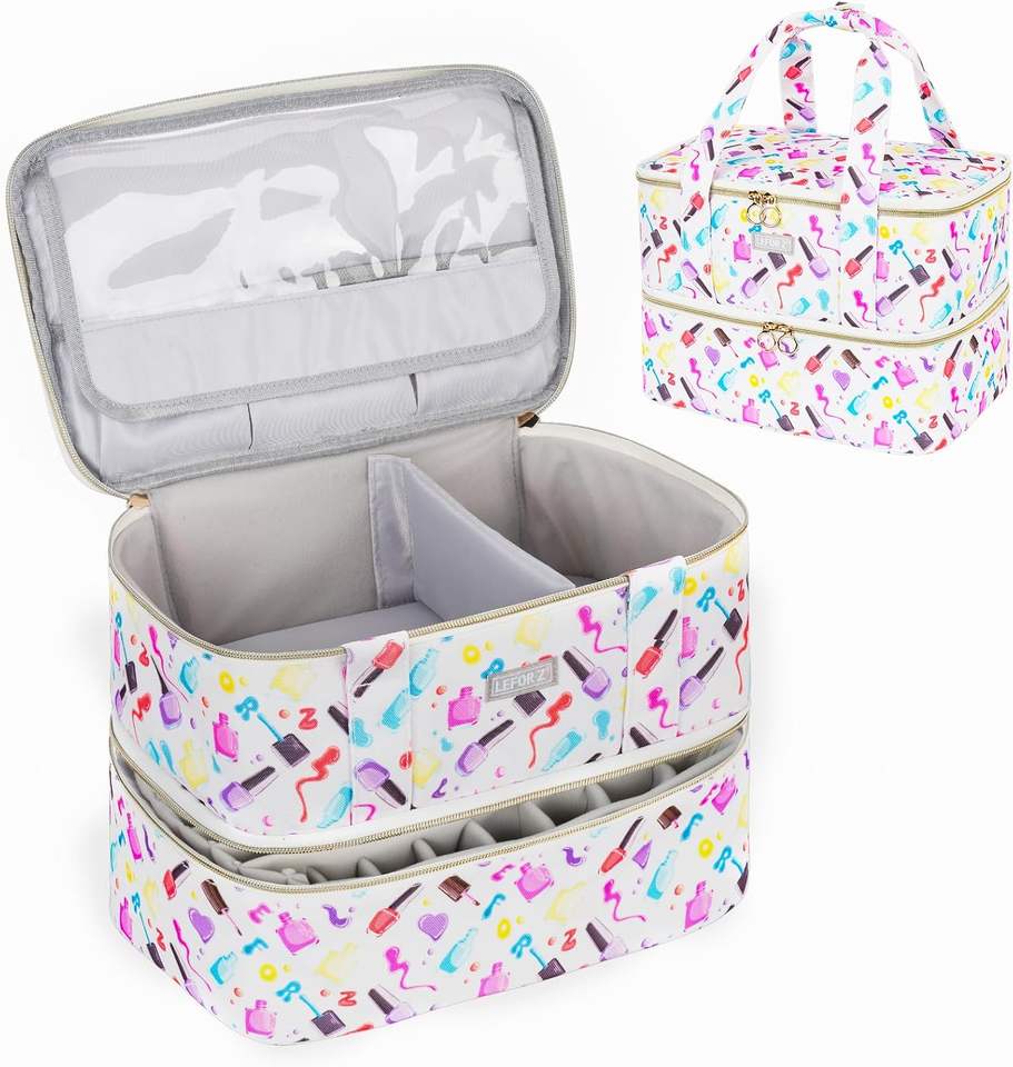 กล่องเก็บยาทาเล็บแบบสองชั้น พร้อมที่วางขวด ที่อบเล็บ และช่องเก็บอุปกรณ์เสริมแบบถอดได้ 2 ช่อง (ตัวอย่างสินค้าฟรี)