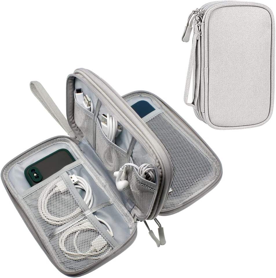 กระเป๋าจัดระเบียบอุปกรณ์อิเล็กทรอนิกส์แบบสองชั้นสำหรับเดินทาง กระเป๋าเก็บของดิจิทัล ตัวอย่างสินค้าฟรี
