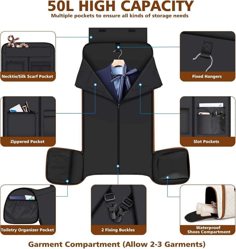 กระเป๋าเสื้อผ้าพรีเมี่ยมพร้อมฝาปิดกระเป๋าเดินทางที่สะดวกสำหรับแขวนและจัดเก็บ