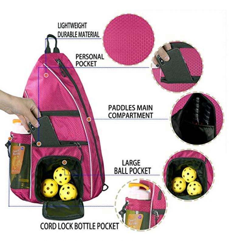 กระเป๋าสะพายข้างแบบสะพายหลังสำหรับไม้พิกเคิลบอล ลายกุหลาบ ผลิตตามสั่งจากโรงงาน มีตัวอย่างฟรี ใช้ได้ทั้งผู้ชายและผู้หญิง