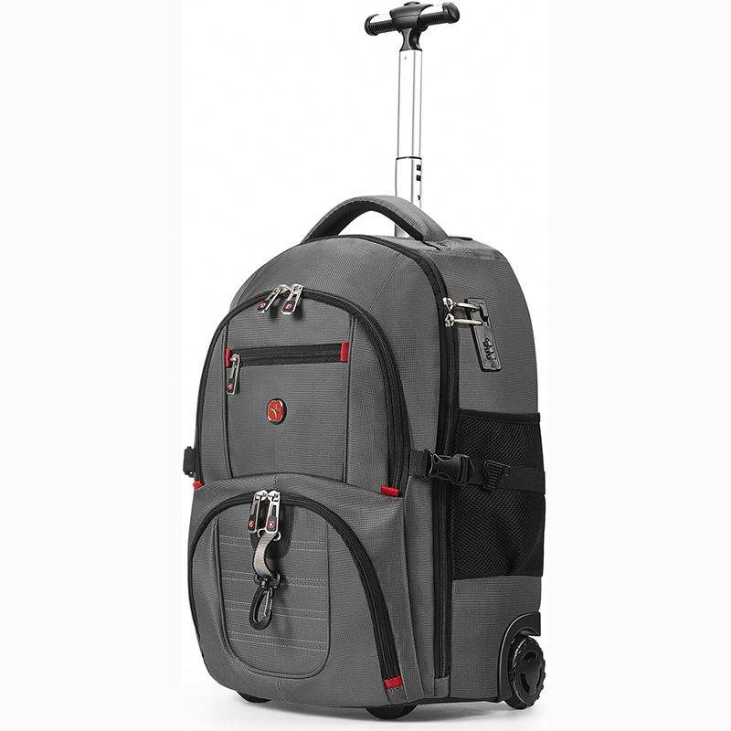 กระเป๋าเป้สะพายหลังแบบมีล้อสำหรับใส่คอมพิวเตอร์ ดีไซน์เนอร์สีดำ พร้อมช่องใส่ขวดน้ำ ตัวอย่างสินค้าฟรี