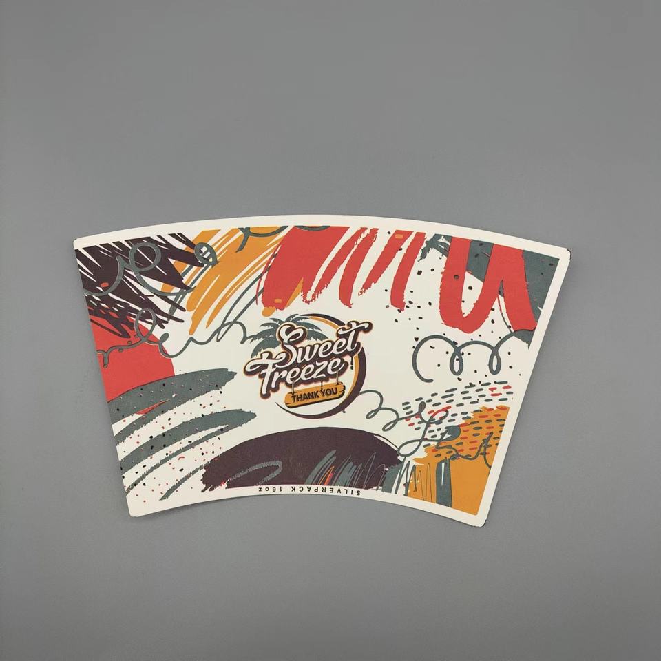 ถ้วยกระดาษเคลือบ PE เกรดอาหารบรรจุภัณฑ์แบบพัดลมพิมพ์แบบยืดหยุ่นสำหรับใช้ในอุตสาหกรรมสำหรับขนมขบเคี้ยว