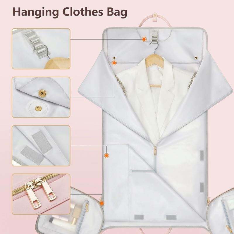 ถุงใส่เสื้อผ้าตัวอย่างฟรี พร้อมช่องเก็บของขนาดใหญ่พิเศษสำหรับการเดินทาง ปลอกคลุมสูทแบบมีฐานรอง กระเป๋าแขวนพับได้สำหรับเสื้อผ้าผู้ชายและผู้หญิง