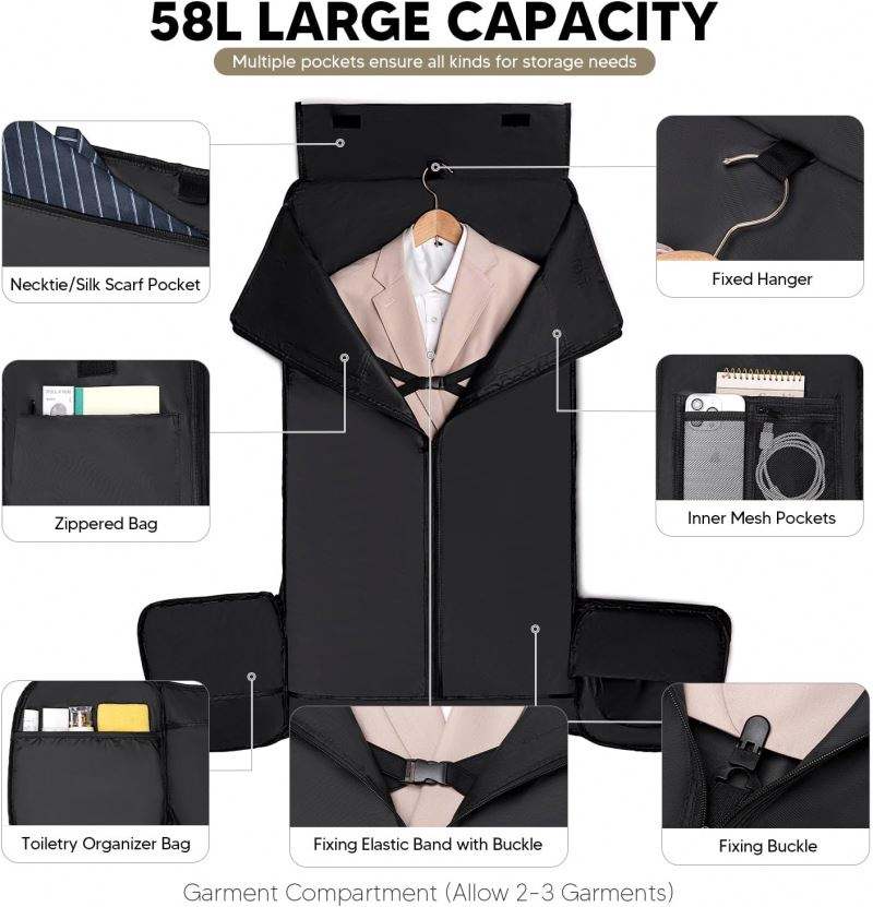 กระเป๋าใส่เสื้อผ้าสำหรับเดินทางแบบฟรีไซส์ 2 in 1 กระเป๋าเดินทางแบบถือและสะพายหลัง พับเก็บได้ พร้อมช่องใส่รองเท้าและกระเป๋าใส่อุปกรณ์อาบน้ำ