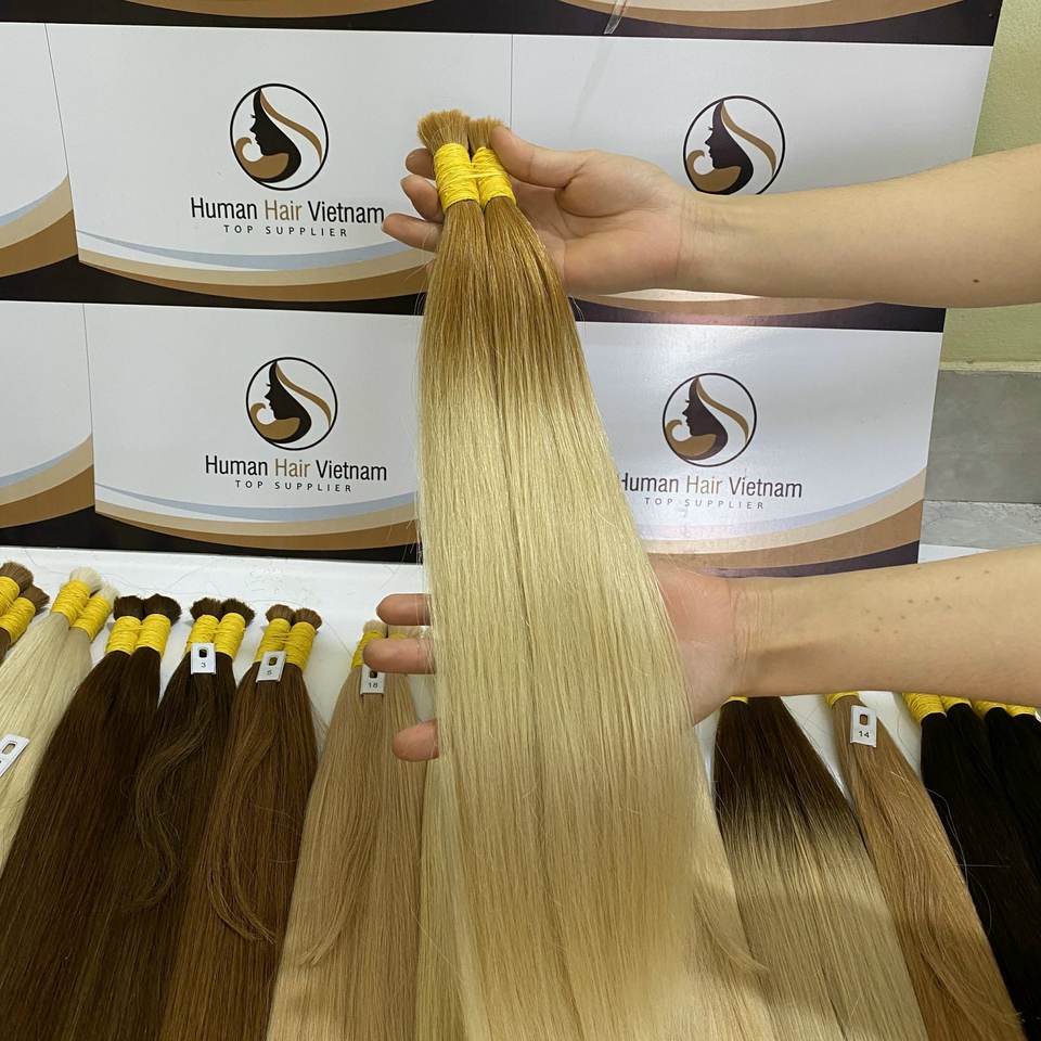 ตัวอย่างฟรีต่อผมมนุษย์หนังกำพร้าชิดผมบริสุทธิ์สีบลอนด์613กระดูกตรงเป็นกลุ่มผม