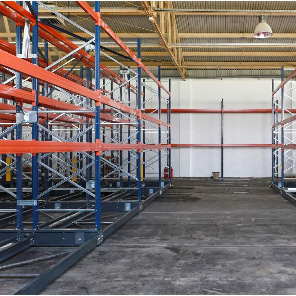 ชั้นวางจัดเก็บพาเลทสีฟ้าและสีส้มสำหรับอุตสาหกรรม
