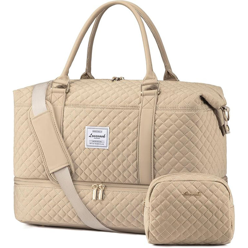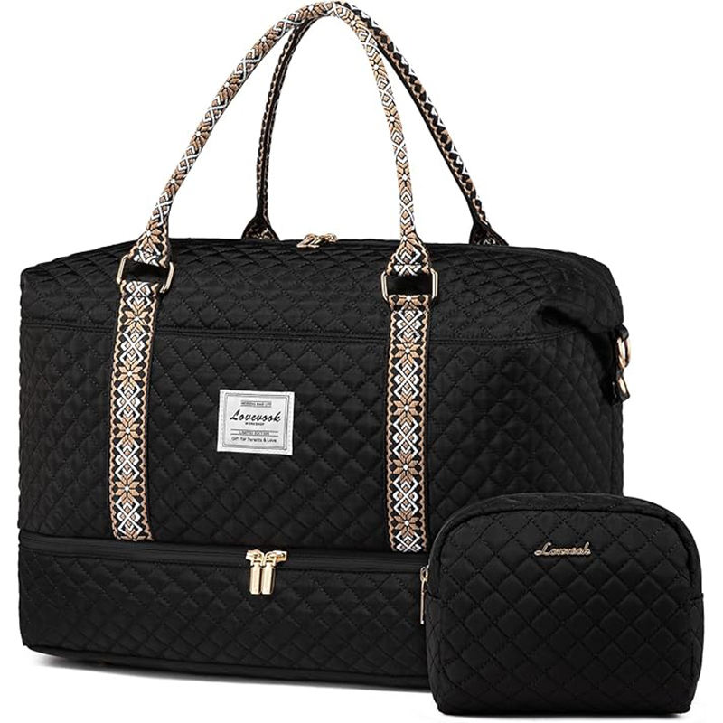 กระเป๋าผ้าแคนวาสขนาดใหญ่สำหรับเดินทางไปเที่ยวทะเล ออกกำลังกาย หรือพักค้างคืน กระเป๋าถือแบบมีหูหิ้ว กระเป๋าเดินทางสำหรับสตรี ตัวอย่างสินค้าฟรี