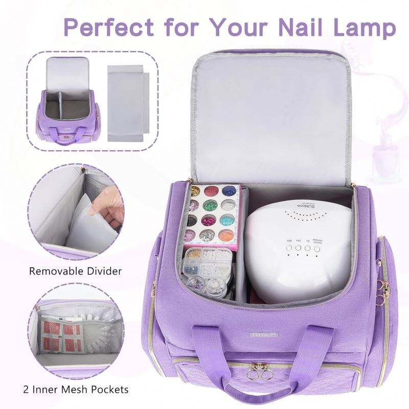 กล่องเก็บยาทาเล็บแบบพกพา ตัวอย่างฟรี ชั้นวางยาทาเล็บสองชั้นพร้อมตัวแบ่งปรับได้