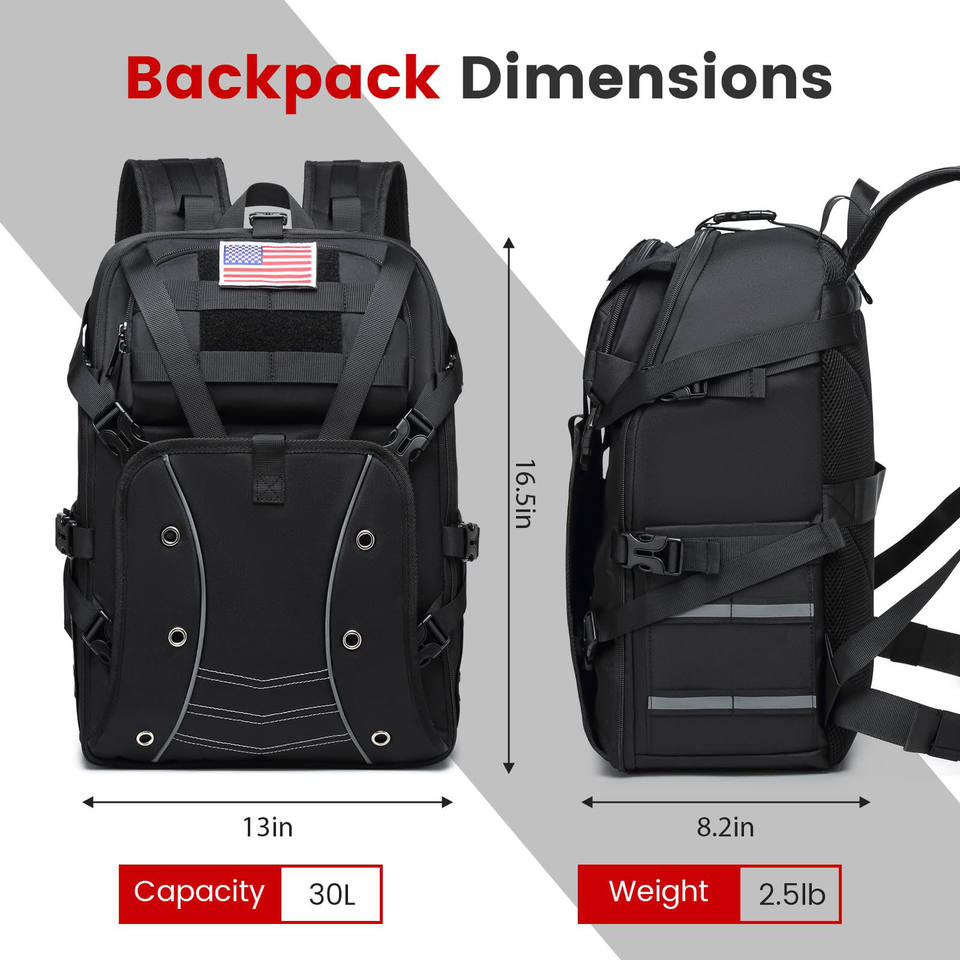 กระเป๋าเป้สะพายหลังสำหรับมอเตอร์ไซค์กลางแจ้งแบบใหม่ ตัวอย่างสินค้าฟรี ความจุเยอะ พร้อมช่องเก็บหมวกกันน็อคแบบ Molle เหมาะสำหรับการเดินป่า ปั่นจักรยาน และขี่มอเตอร์ไซค์