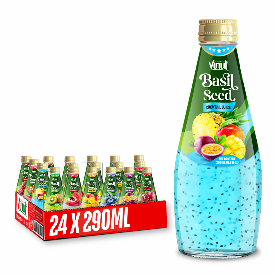 เครื่องดื่มเมล็ดโหระพาผสม290มล. เมล็ดพันธุ์จากโรงงานเวียดนามเมล็ดเจียปราศจากน้ำตาลฉลากส่วนตัว