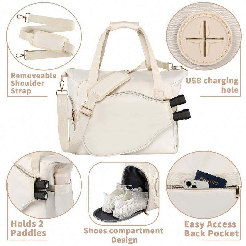 บริการตัวอย่างฟรี OEM/ODM กระเป๋าโท้ทอเนกประสงค์ขนาดใหญ่สำหรับผู้หญิง พร้อมช่องใส่รองเท้า กระเป๋าสำหรับเล่นพิคเคิลบอล