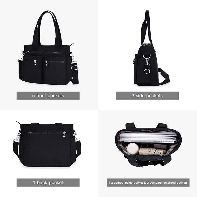 กระเป๋าโท้ทโพลีเอสเตอร์ตัวอย่างฟรี พร้อมช่องใส่ของด้านนอก ซิปด้านบน และเชือกรูด สำหรับเพื่อนเจ้าสาว เพื่อนสนิท และครู