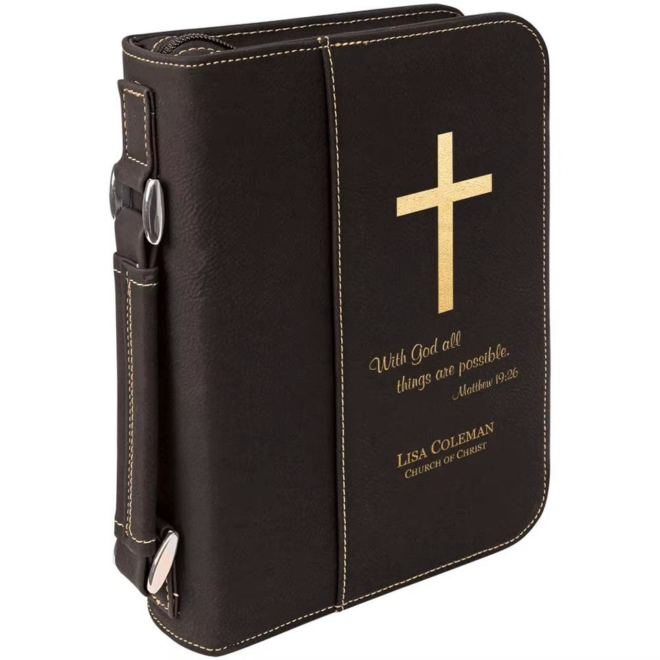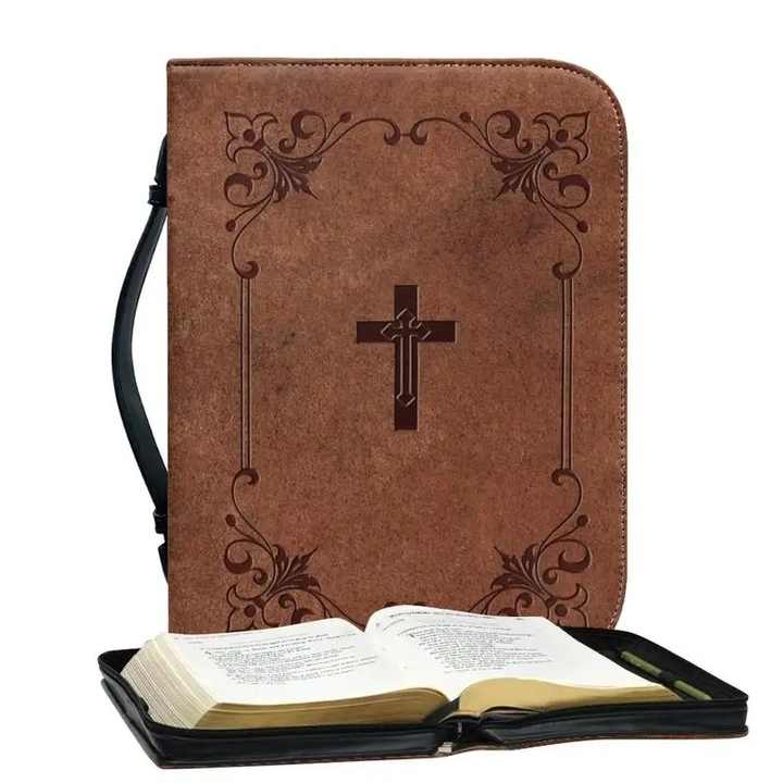 กระเป๋าใส่พระคัมภีร์หนังพรีเมียมแบบมีซิปพร้อมหูหิ้ว สไตล์เรียบง่าย ทันสมัย พร้อมฉนวนกันความร้อน ตัวอย่างสินค้าฟรี