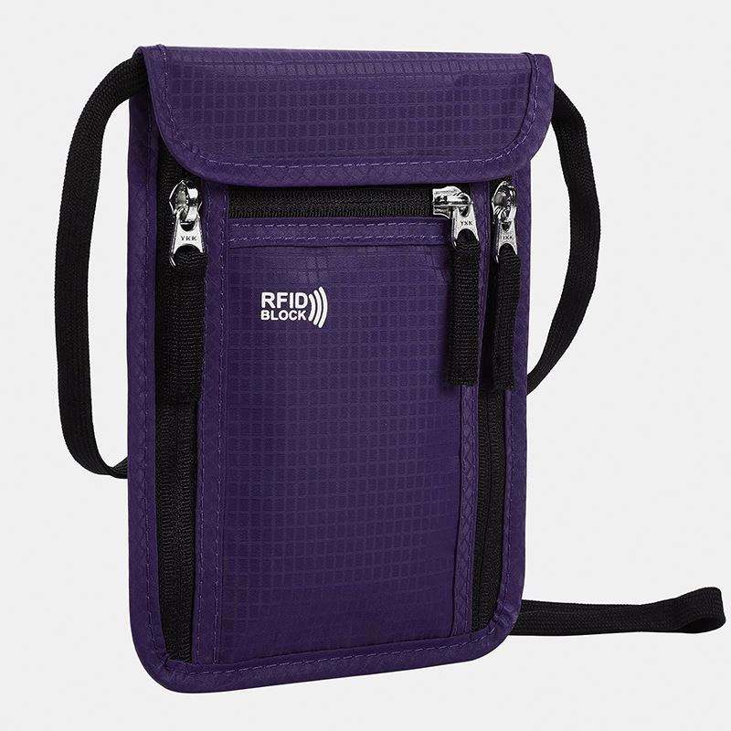 กระเป๋าใส่เงินแบบคล้องคอป้องกัน RFID สำหรับเดินทาง กระเป๋าใส่พาสปอร์ตแบบคล้องคอสั่งทำได้ ตัวอย่างสินค้าฟรี
