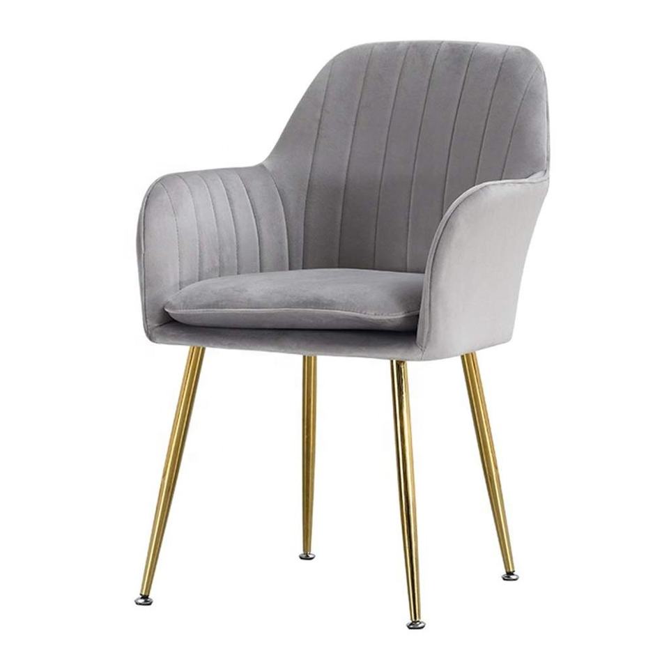 Free Sample Restaurant Furniture Dinning Room Modern High Back Gray Velvet Luxury Fabric Dining Chair with Gold Legs