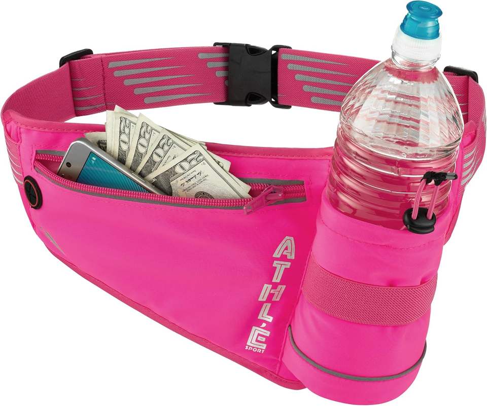 กระเป๋าคาดเอววิ่งแบบมีที่ใส่ขวดน้ำ รุ่นกันน้ำลายเสือดาว พร้อมช่องใส่ขวดน้ำ ตัวอย่างสินค้าฟรี