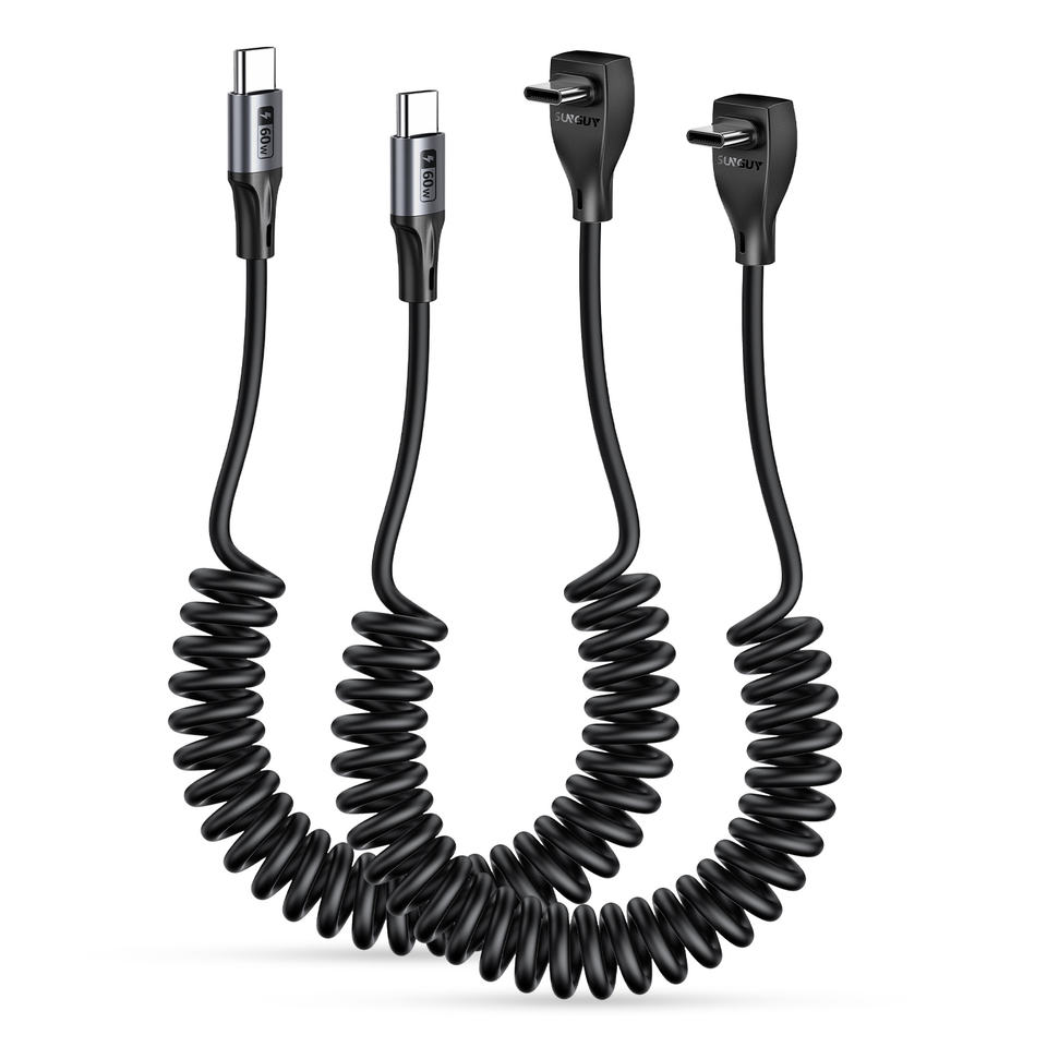 SUNGUY 60W USB C สายชาร์จเร็วแบบพับเก็บได้สายเคเบิลข้อมูลเครื่องชาร์จ USB-C สำหรับโทรศัพท์มือถือแล็ปท็อปในรถยนต์