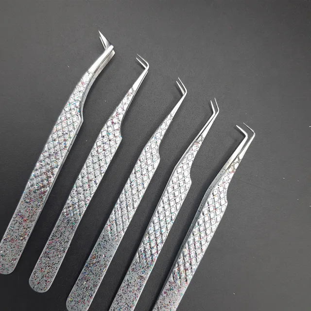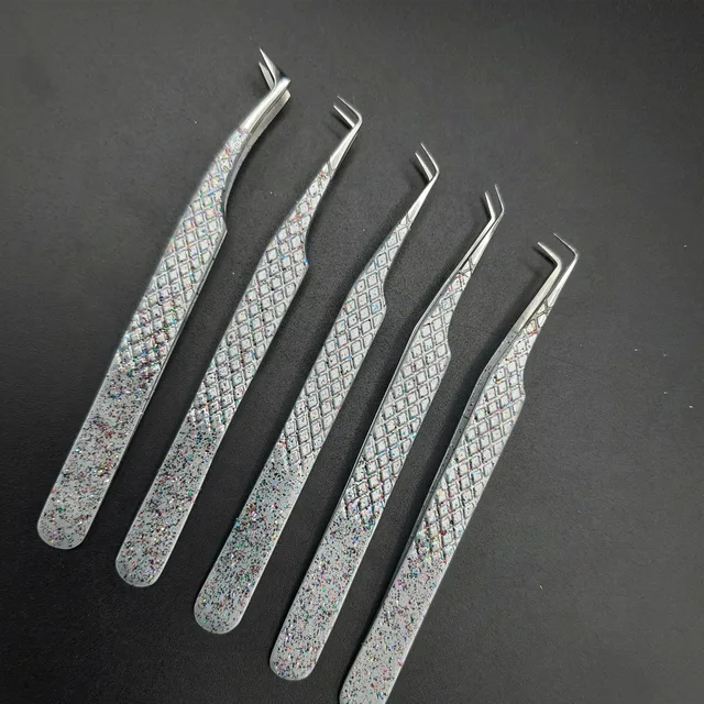 ตัวอย่างฟรีเงินแวววาวประกายเพชรจับต่อขนตาแหนบต่อขนตาสแตนเลสญี่ปุ่นแหนบต่อขนตา