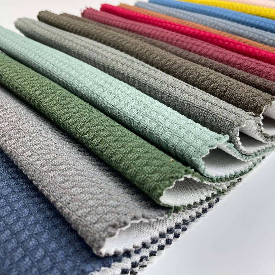 ผ้าหุ้มโซฟาเบดตัวอย่างฟรี 260 GSM โพลีเอสเตอร์ถัก 100% กันน้ำ ทนต่อการฉีกขาด MOQ ต่ำ ปรับแต่งได้ สำหรับตกแต่งบ้าน