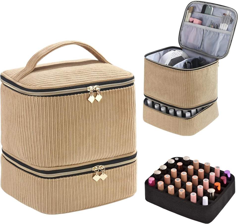 ตัวอย่างฟรี ยาทาเล็บแบบใหม่ กระเป๋าพกพาใส่ขวดได้ ผลิตภัณฑ์ทำเล็บ โคมอบเล็บ ที่เก็บของแบบพกพา สองชั้น