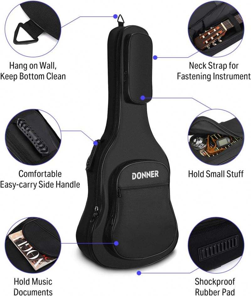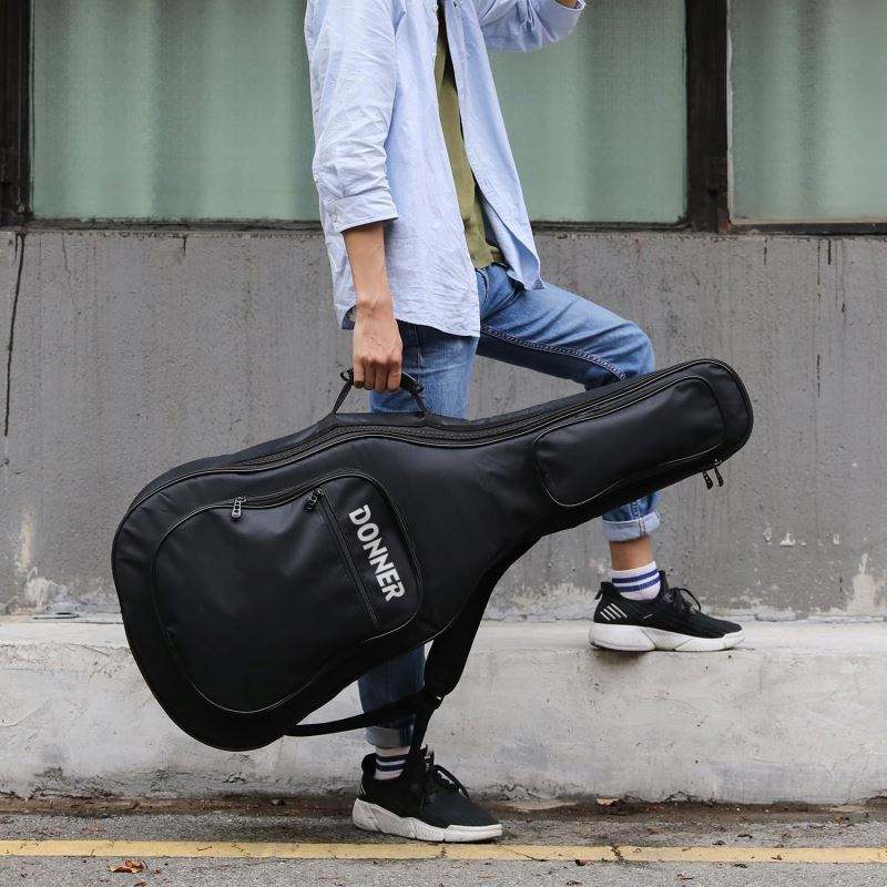 กระเป๋าใส่กีตาร์แบบหนา กันน้ำ พร้อมสายสะพายปรับได้ สีดำ พร้อมที่แขวนหลัง ตัวอย่างสินค้าฟรี