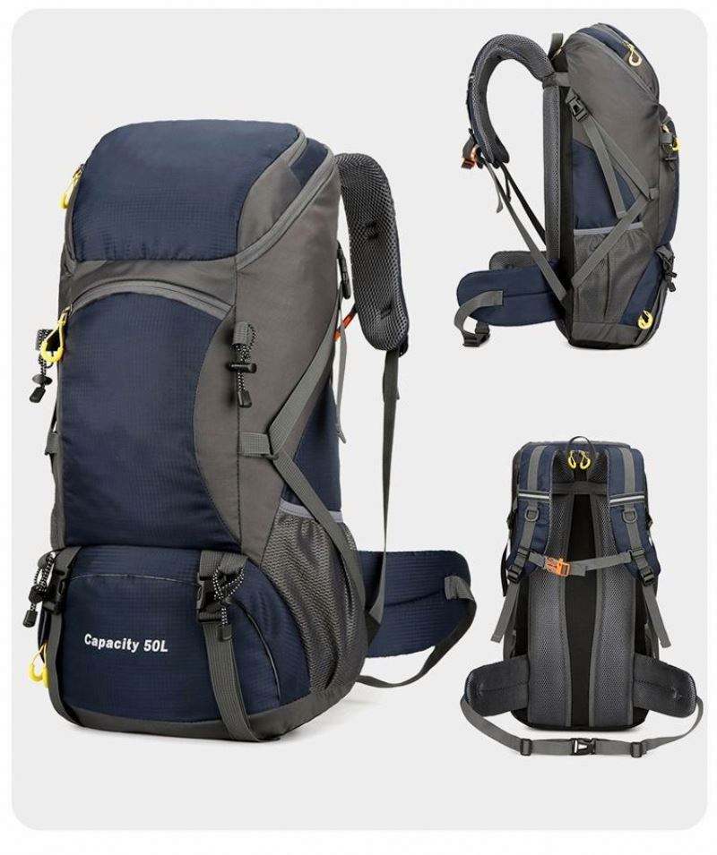 กระเป๋าเป้สะพายหลังสำหรับตั้งแคมป์ ปีนเขา เดินป่า ขนาด 50 ลิตร ผลิตจากไนลอน น้ำหนักเบา ทนทานต่อการสึกหรอ ตัวอย่างสินค้าฟรี รับผลิตตามแบบ
