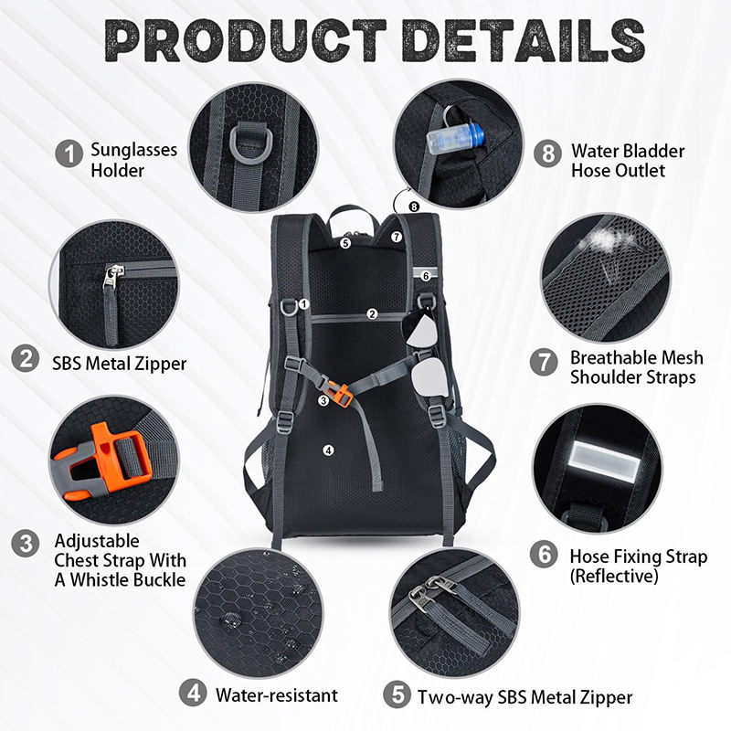 กระเป๋าเป้กันน้ำสำหรับผู้ชายและผู้หญิง ตัวอย่างสินค้าฟรี กระเป๋าเป้จัดระเบียบได้ กระเป๋าเป้เดินป่าแบบเบา
