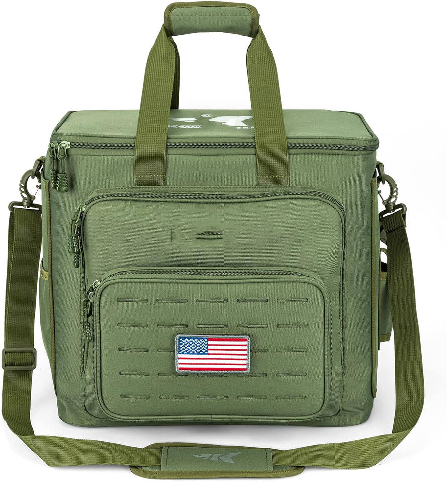 กล่องอุปกรณ์ตกปลาสีเขียวทหารแบบสองชั้น พร้อมที่ใส่คันเบ็ด 2 ชิ้น ที่วางแก้ว 2 ชิ้น สายสะพาย 1 ชิ้น รุ่นอุปกรณ์เสริมขนาดใหญ่