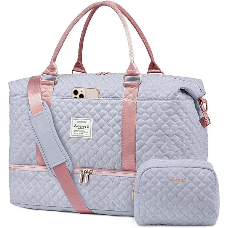 กระเป๋าเดินทางสำหรับผู้หญิงแบบกันน้ำ กระเป๋าผ้าแคนวาสสำหรับออกกำลังกาย กระเป๋าถือสะพายไหล่สำหรับเดินทางช่วงสุดสัปดาห์ กระเป๋าเดินทางขนาดพกพา ตัวอย่างสินค้าฟรี