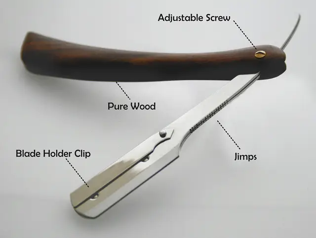 ตัวอย่างฟรีด้ามไม้มีดโกนขอบตรงสําหรับผู้ชายสแตนเลสมือโยกตัดคอตัดผมมีดโกนหนวด