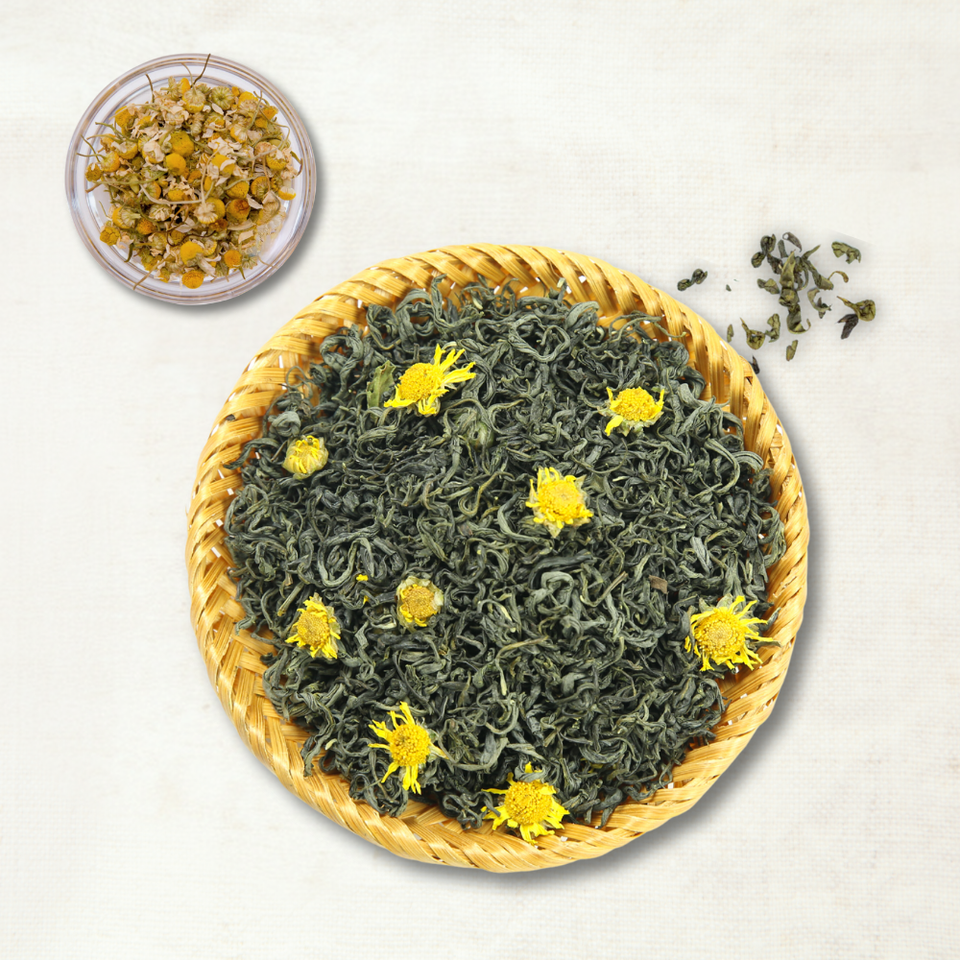 ใบชาและดอกคาโมไมล์ส่วนผสม