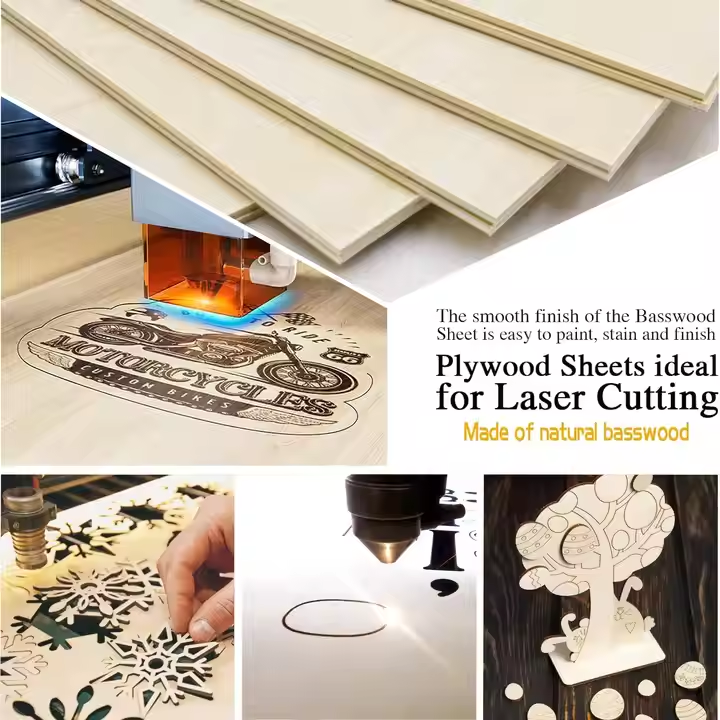 ไม้บาสวู้ดเกรด3มม. แผ่นไม้ตัดด้วยเลเซอร์สำหรับชิ้นส่วนของเล่นและแขวนผนังงานฝีมือไม้ซีเอ็นซี