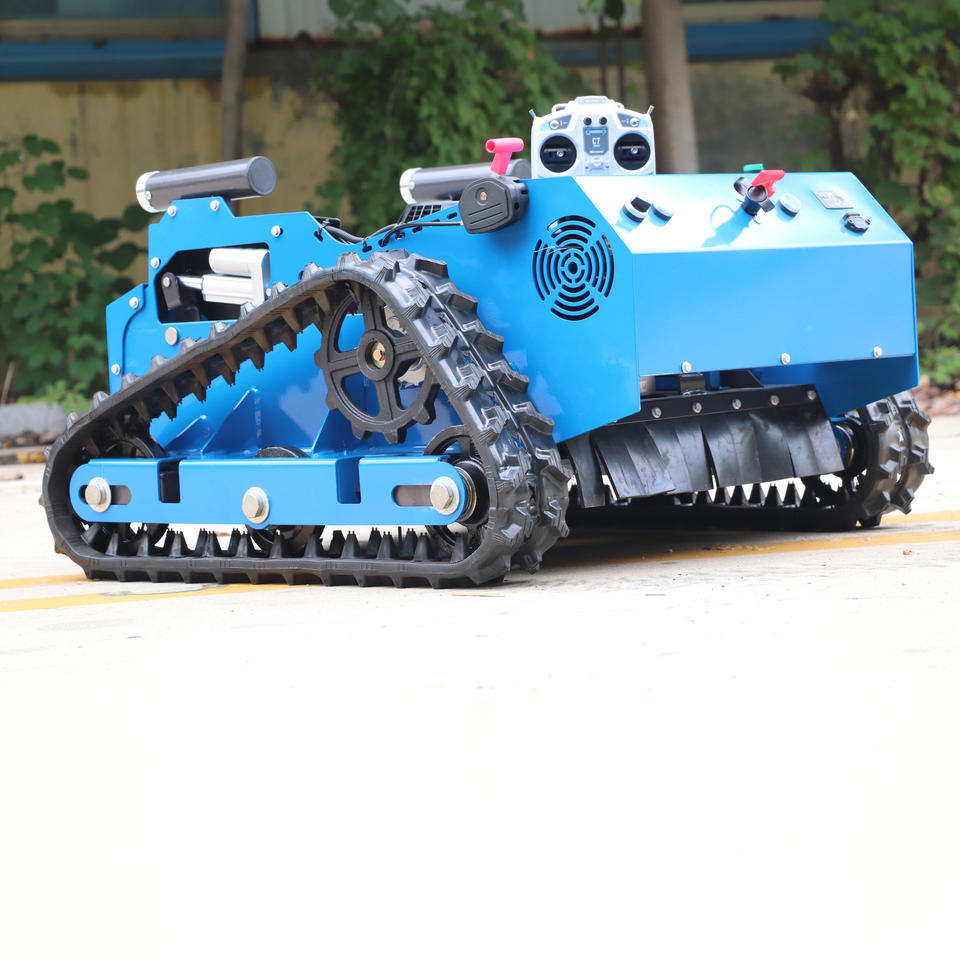 เครื่องตัดหญ้าแบบไร้สายสำหรับอุตสาหกรรม พร้อมรีโมทคอนโทรล ใบมีดแบบแบน เครื่องยนต์ EPA Euro5 ปรับความสูงได้ 1-20 ซม. ระยะควบคุมรีโมท 500 ม. จัดส่งฟรี