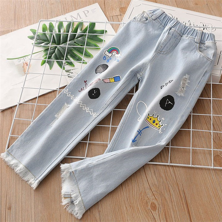 ชื่อสินค้า:โรงงานผ้าเดนิม กางเกงยีนส์เดนิม เสื้อผ้าเด็กผู้หญิง กางเกงยีนส์ขายาวเดนิม