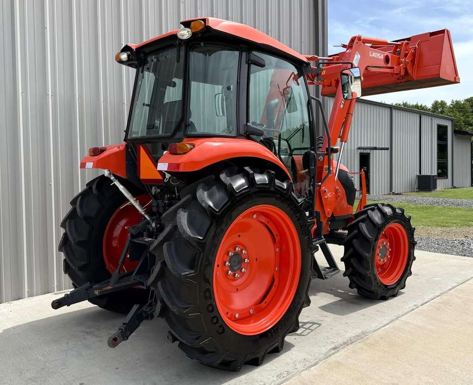 จัดส่งฟรีรถแทรกเตอร์ในฟาร์ม M6060คูโบต้าพร้อมตัวโหลดที่แนบมาอย่างรวดเร็วและถัง4WD 383hrs 61HP เครื่องยนต์ดีเซล540 PTO 3 POINT Hitch