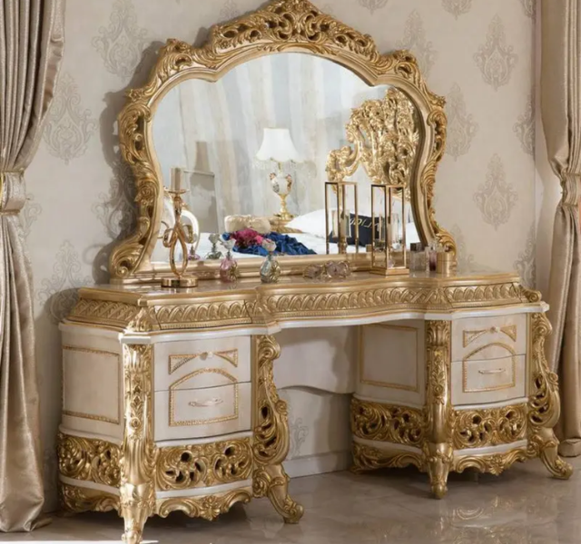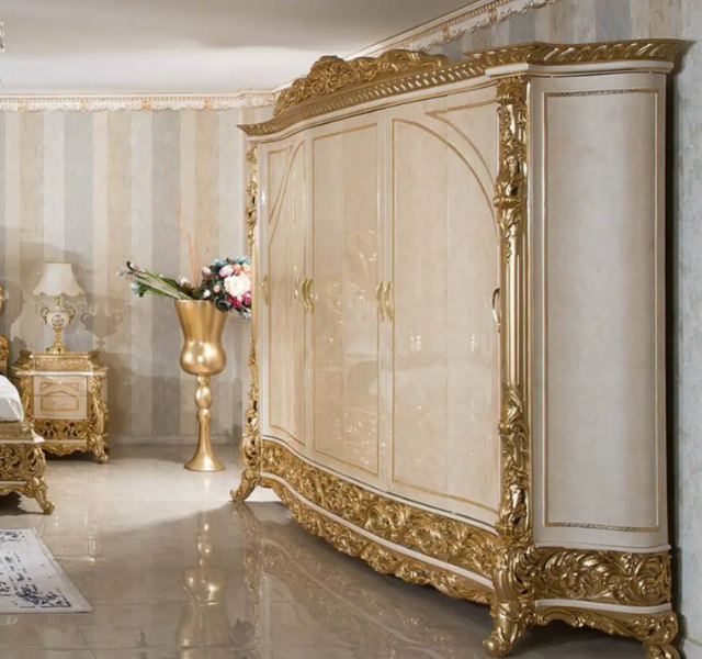 ชุดห้องนอนไม้มะฮอกกานีสีทองหรูหราสไตล์ยุโรปโบราณแกะสลักอย่างประณีต ขนาดคิงไซส์ ผลิตในอินโดนีเซีย จัดส่งฟรี