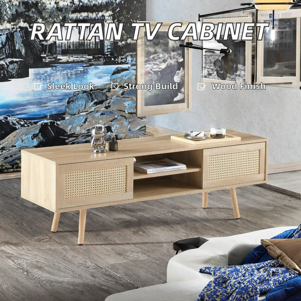 จัดส่งฟรี ตู้วางทีวีหวายทันสมัย แข็งแรง ทนทาน เฟอร์นิเจอร์ห้องนั่งเล่นสำหรับอพาร์ทเม้นท์
