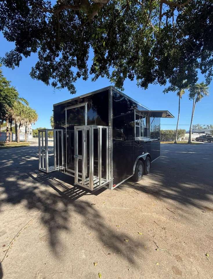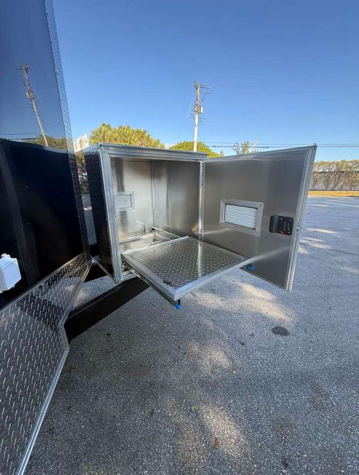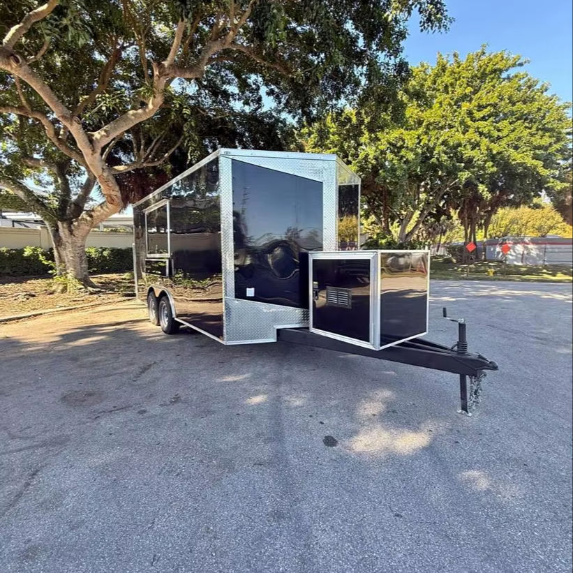 รถพ่วงขายของแบบปิด ขนาด 8.5x16 ฟุต คุณภาพสูง รองรับน้ำหนักได้ 10,000 ปอนด์ พร้อมส่วนประกอบไฮดรอลิกที่ทนทาน จัดส่งฟรี