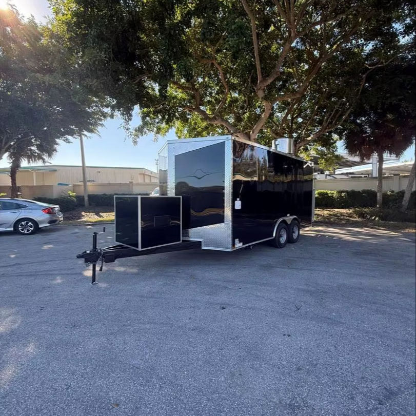 รถพ่วงขายอาหารแบบปิด ขนาด 8.5x16 ฟุต คุณภาพสูง น้ำหนักบรรทุก 10,000 ปอนด์ พร้อมส่งฟรี อะไหล่ไฮดรอลิกคุณภาพสูง ทนทาน ขาย