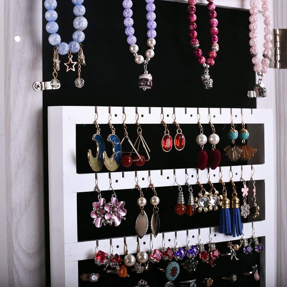 จัดส่งฟรีตู้เครื่องประดับติดผนัง/ประตูสีขาวที่สามารถล็อคได้ประหยัดพื้นที่กระจกจัดพื้นที่สำหรับแต่งหน้าเพื่อความงาม