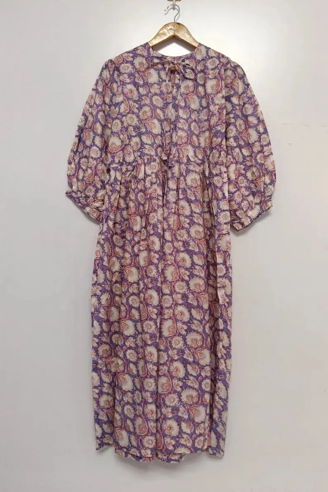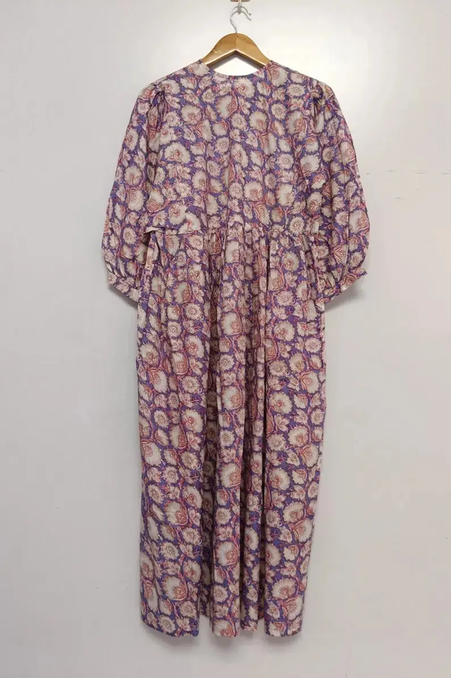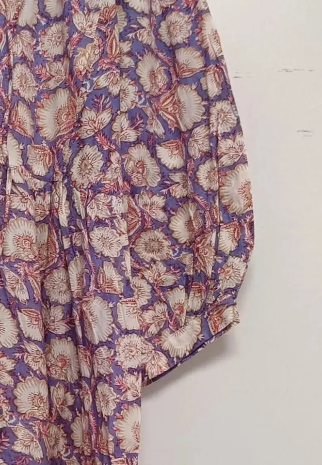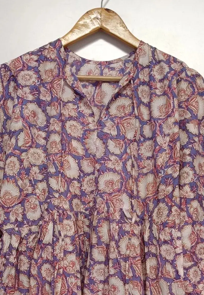 ชุดมินิเดรสสั้นลายดอกไม้สไตล์โบฮีเมียนซักได้แขนยาวคอลึกสายคล้องคอแบบลำลองสำหรับงานปาร์ตี้
