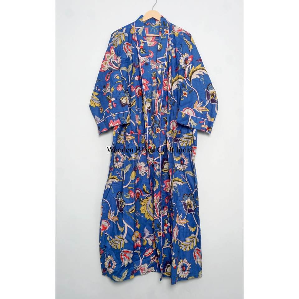 ชุดคลุมกิโมโนลายดอกไม้พิมพ์ลายบล็อก ฟรีไซส์ ทำมือจากผ้าฝ้ายแบบชาวชาวรุรุร์ ชุดคลุมอาบน้ำลำลองชายหาดแบบยาวคลุมเท้า สวมใส่สบาย