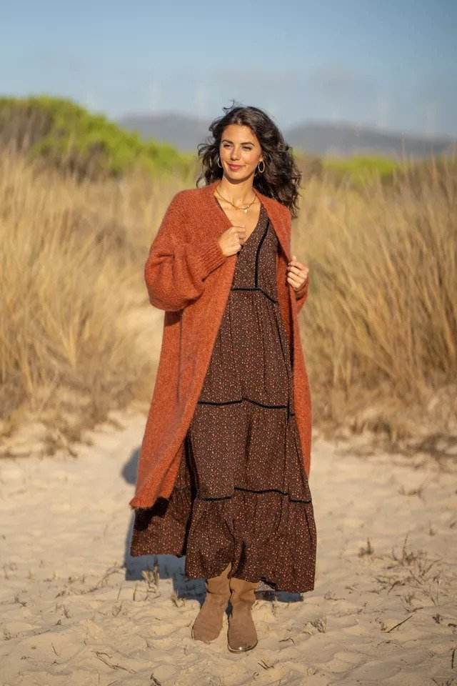 เดรสแม็กซี่ยาวถึงข้อเท้าของผู้หญิงชุดเดรสยาวคลุมเข่าพิมพ์ลายดอกไม้สไตล์โบฮีเมียนคอวีผ้ามัสลิน