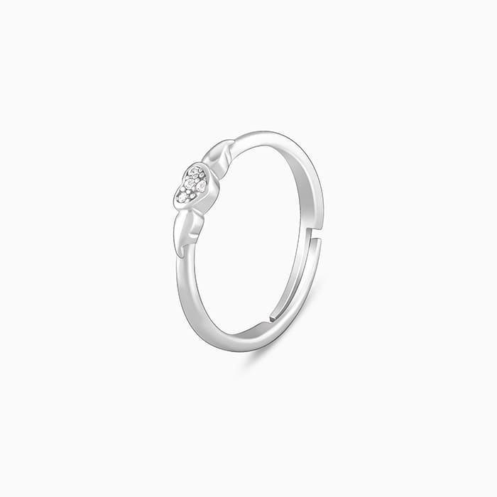 แหวนรูปหัวใจปีกนางฟ้าสีเงิน ฟรีไซส์ ดีไซน์ทันสมัยสไตล์วินเทจ เครื่องประดับอะคริลิกแบบศาสนา ชุบทองโรเดียม ฝังแบบกรงเล็บ